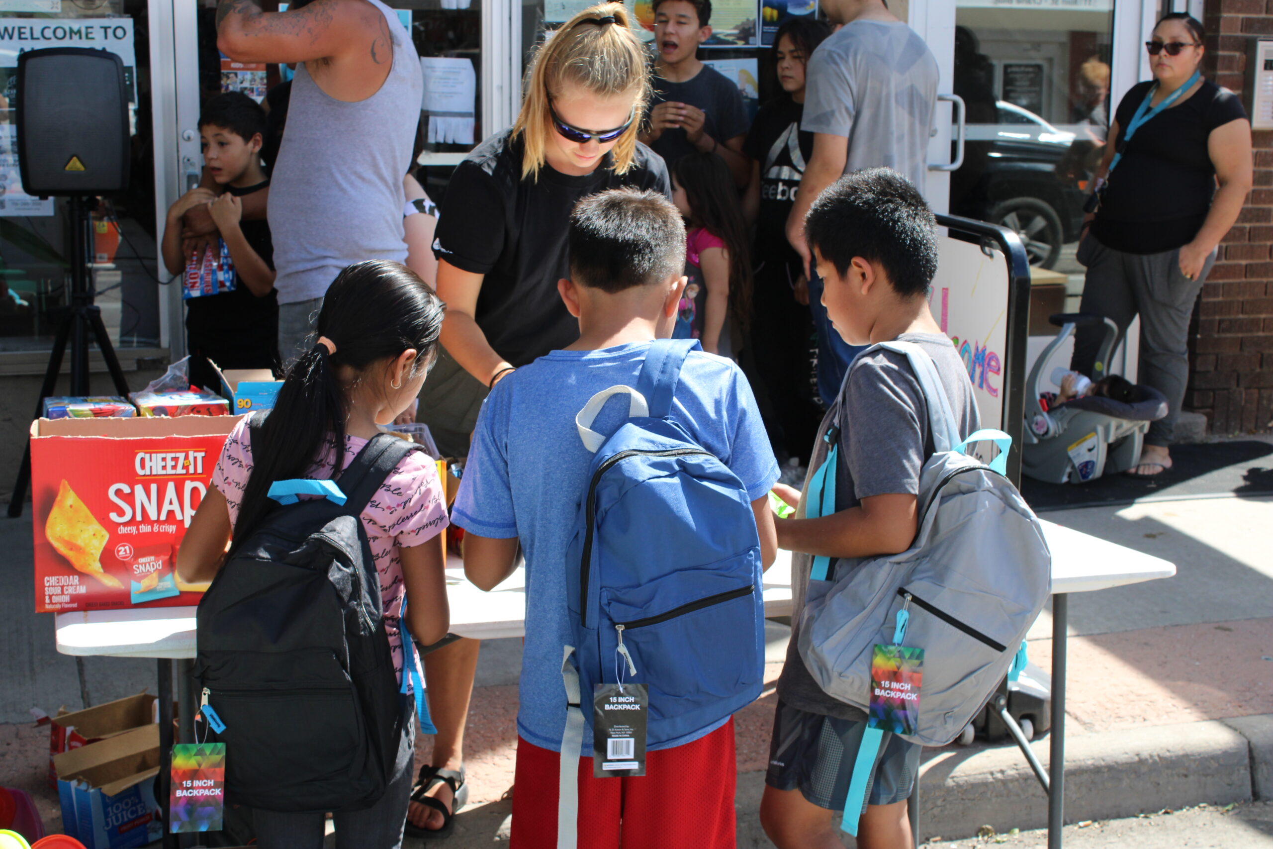 To receive a backpack, a child must be present and the adult must present a photo ID.
